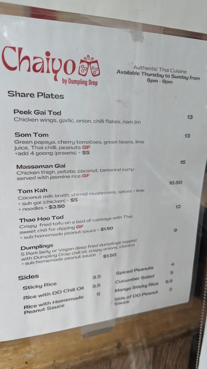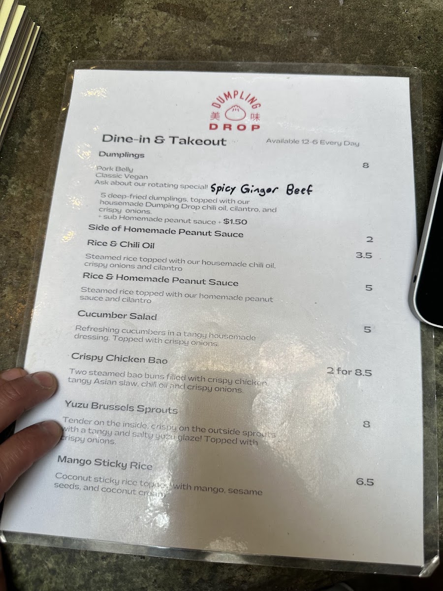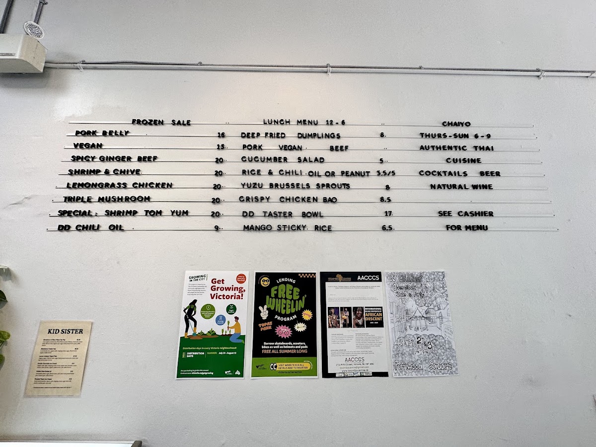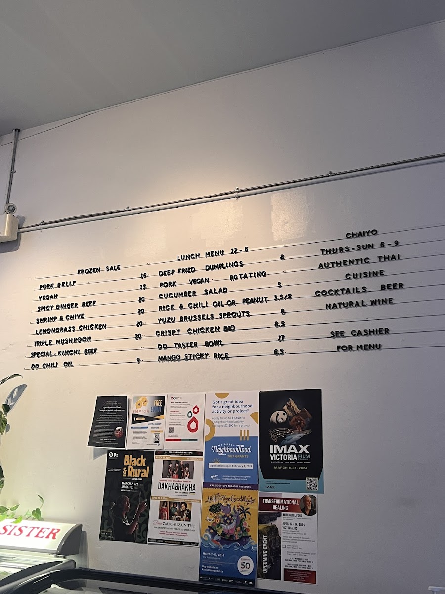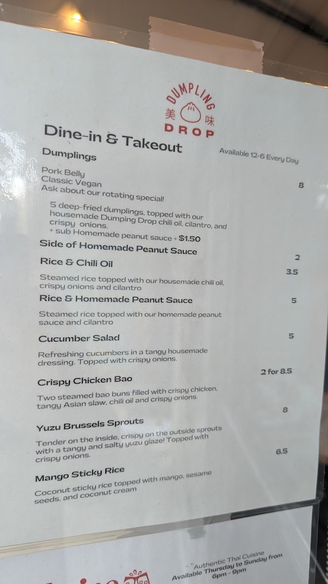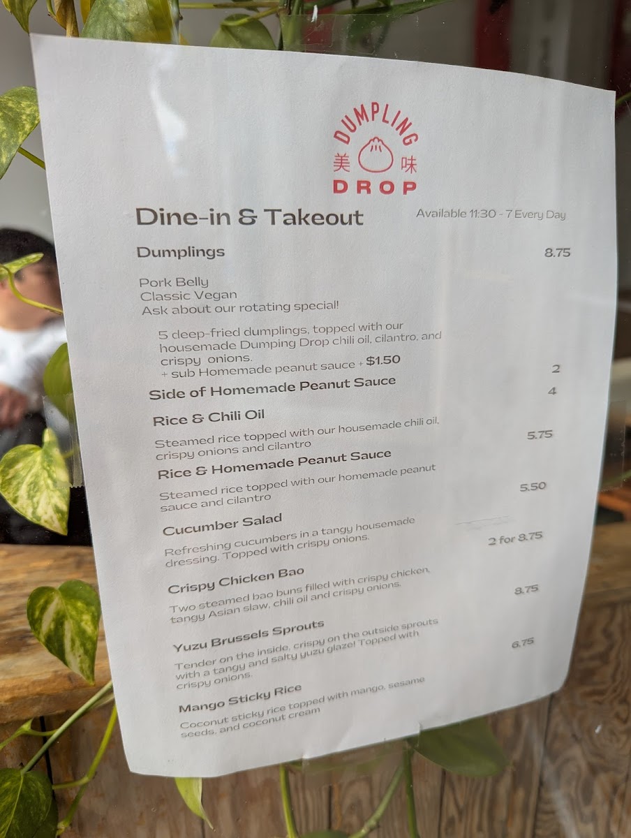 If you're craving something deliciously satisfying, look no further than the Dumpling Drop Menu. Located at 556A Pandora Ave in Victoria, BC, this menu brings a burst of flavor with each bite, offering a unique spin on classic dumplings. Whether you're a fan of traditional fillings or excited to try something new, there’s a perfect bite for everyone. The dumplings are fresh, flavorful, and expertly crafted, making them the star of any meal. Each dish showcases a harmonious balance of textures and seasonings that will keep you coming back for more. Whether you’re here for a quick snack or a satisfying meal, every item on the menu promises to elevate your dumpling experience with bold tastes and high-quality ingredients. With an inviting atmosphere and dishes that speak for themselves, Dumpling Drop makes for the perfect spot to indulge in a warm, comforting meal with friends or family.